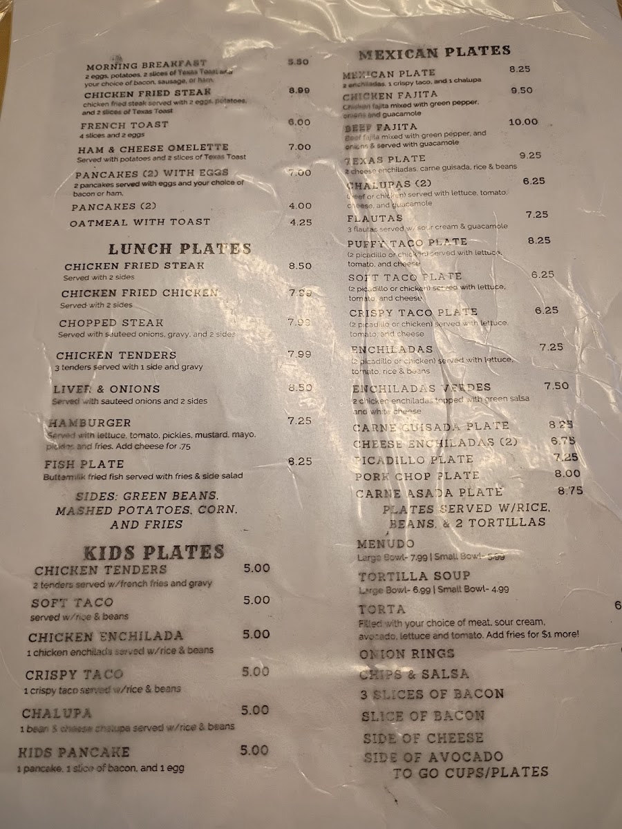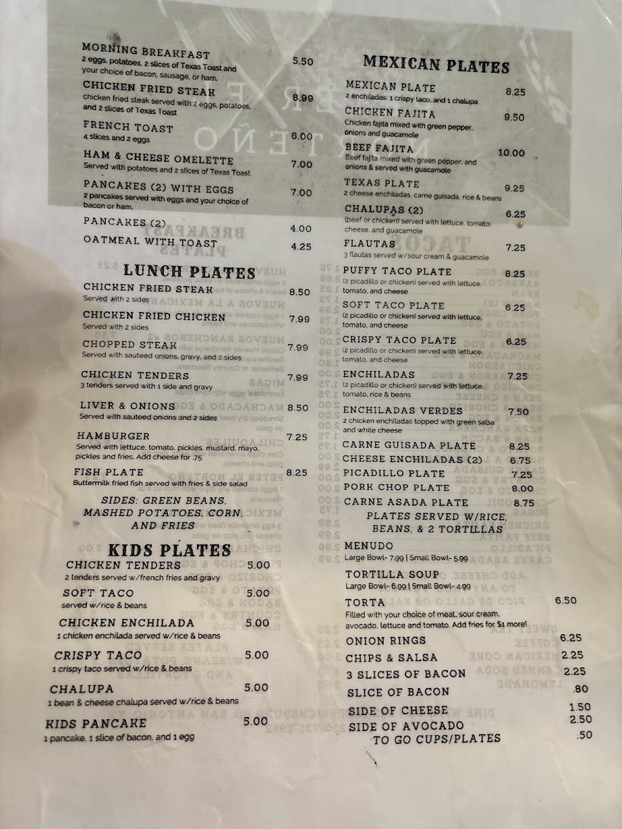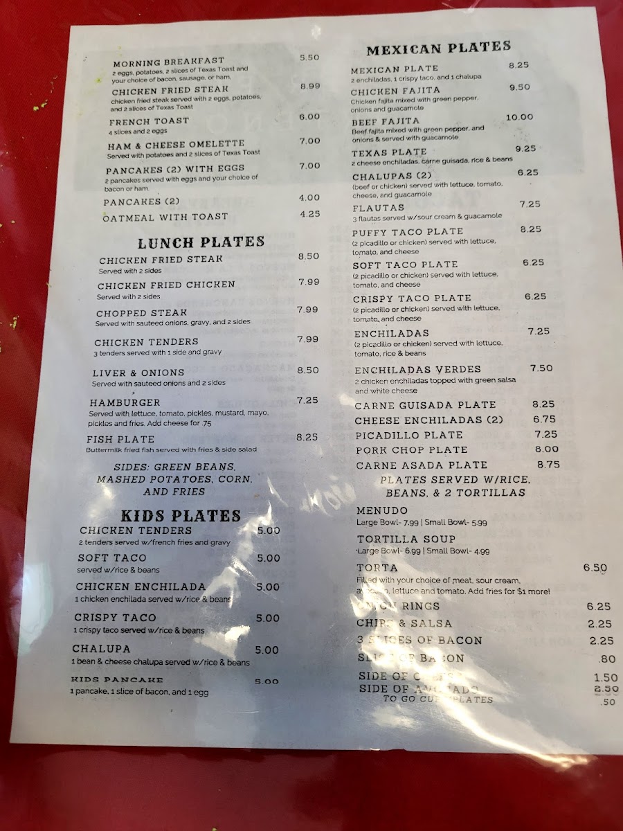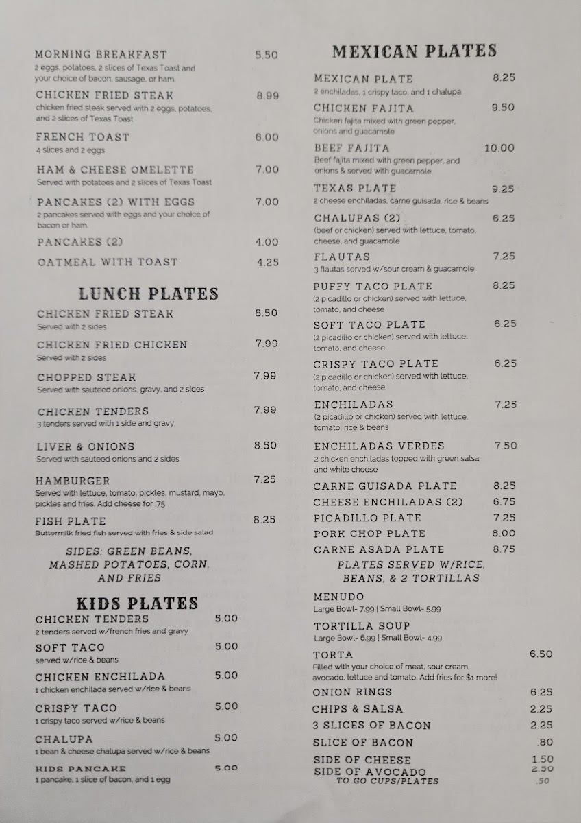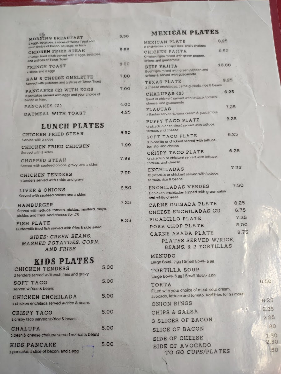 Welcome to Peter El Norteño, where your culinary journey begins at our vibrant restaurant located at 542 Fredericksburg Rd, San Antonio, TX 78201. Our menu is a feast for the senses, featuring irresistible specialties that are sure to tempt your taste buds. Indulge in our Chicken Fried Chicken and Chicken Fried Steak for a comforting classic, or savor the zesty flavors of our Beef Fajita Plate and Flauta Plate. Don’t miss out on the Carne Guisada Taco or the satisfying Chicken Tenders with Onion Rings. For breakfast lovers, our Pancakes with two eggs and Ham Omelette are simply divine. And if you're in the mood for something hearty, try our Pork Chop & Egg or the comforting bowl of Menudo. With dishes like Cheese Enchiladas, Carne Guisada Plate, and Huevos Rancheros with Pork Chop, each bite at Peter El Norteño promises to transport you to a world of rich flavors and home-cooked goodness. Come and explore our menu; we can't wait for you to experience the deliciousness that awaits!